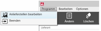 To remove a supplier, select the supplier on the main screen and click on the Delete entry in the menu bar or click on the Delete button in the toolbar (this is an archivingoperation).