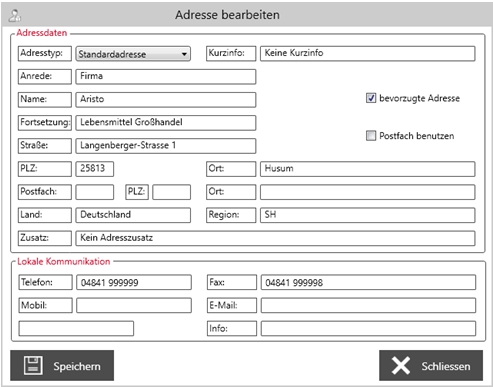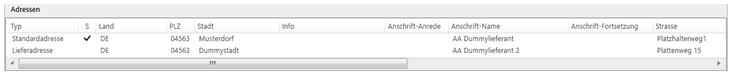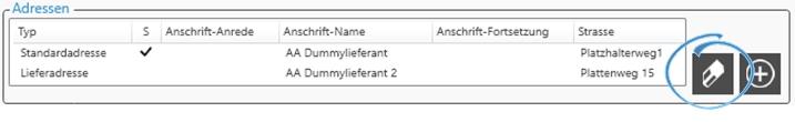 Addresses can be edited in the main screen or in the input dialog of the master data by double-clicking. An entry is deleted by selecting and then confirming the eraser symbol: