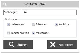 Using the search function, which is also called up via the menu bar, a full text search can be carried out according to various criteria.