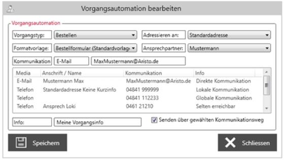The process automation is displayed in table form and can be edited and newly created via a new input dialogue:
