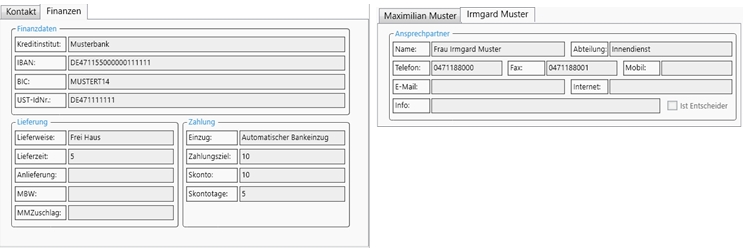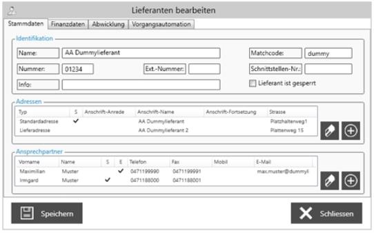 The supplier master manages their address data of the suppliers and can store all associated contact persons and communication channels in order to access them, for example, for automatic ordering.