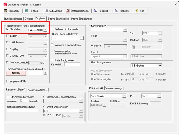 The device can be equipped with a raised stand so that a receipt printer can be integrated in the correct shape. Printers with rectangular or cube shape such as the Hypersoft Multiprinter Styleare particularly suitable for this purpose.