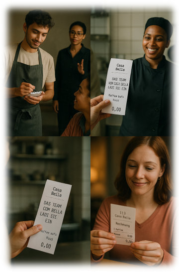 A "popular trick" in some businesses goes like this: A guest is first invited with consent - e.g. for a drink or a meal. The guests are delighted, but often order more afterwards. These repeat orders are no longer entered correctly in the POS system, but are added manually to the receipt. The total is correct in the end - but the tip is secretly increased by the unaccounted orders.
