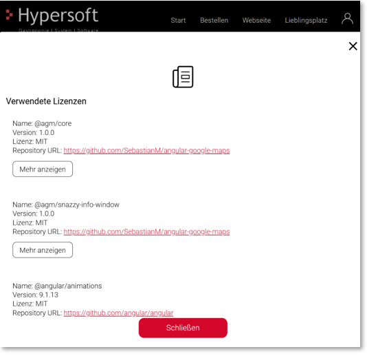 A licence link is integrated in the mobile navigation and in the web shop to give users direct and quick access to licence information.