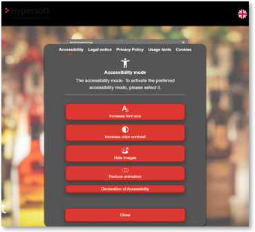 An additional dialogue has been added that allows users to customise accessible settings. The associated CSS has been revised to provide clear contrasts and easy-to-use components.