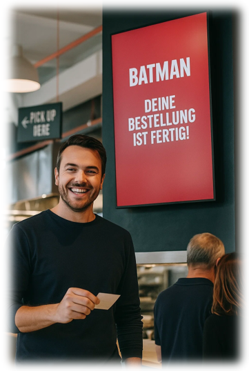 Waiting makes you hungry. And nothing is worse than not hearing an order, missing it or frantically asking "Was that my number?" at the last minute. This is where the superhero function comes into play: