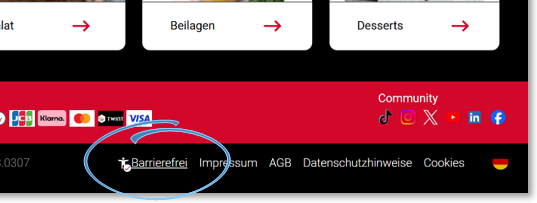 An additional menu item in the footer provides direct access to a configuration dialogue for accessible settings. Users can make individual customisations there.