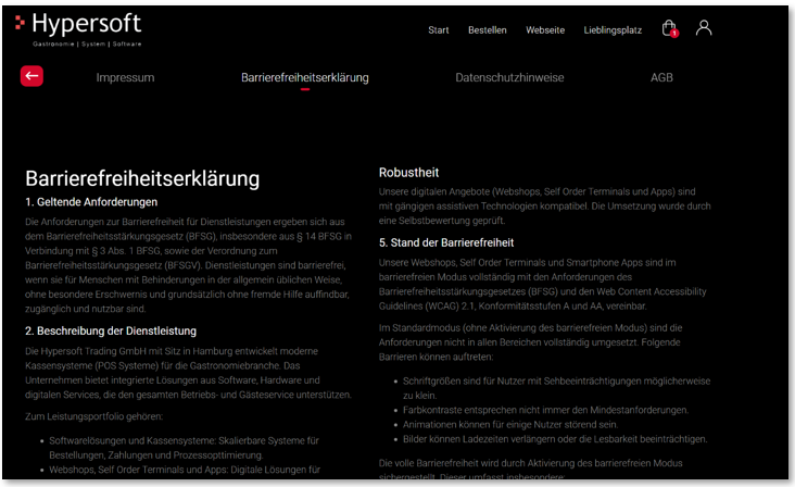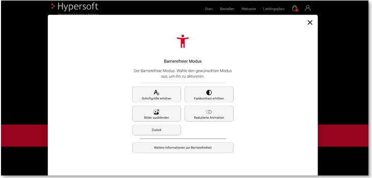 As part of the implementation of the legal requirements for the accessibility of digital services in accordance with the Barrierefreiheitsstärkungsgesetz (BFSG) and the underlying EU directive (European Accessibility Act, EAA), the Hypersoft webshop has been expanded to include a comprehensive accessibility mode.
