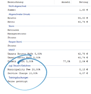 Service Charge and Municipality Fee are stored as special tax in the master data: