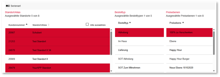 Location/alias - one or more locations can be selected. For the location selection table, there are the options of selecting all locations at the same time or cancelling the current selection.