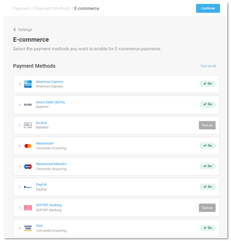 The payment methods in the Hypersoft Portal are used exclusively for Hypersoft Pay powered by Adyen. Please configure the desired payment methods of wallee within the wallee portal in the eCommerce Payment section and take into account the payment methods supported by our shop.