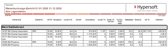 Front Office Reports: The manager report has been extended in the area of loss reasons and price level. Now also In house and Out of house sales are listed in item quantity and amount. If the option switch for loss entries and price levels is active, these are evaluated extra in this respect.