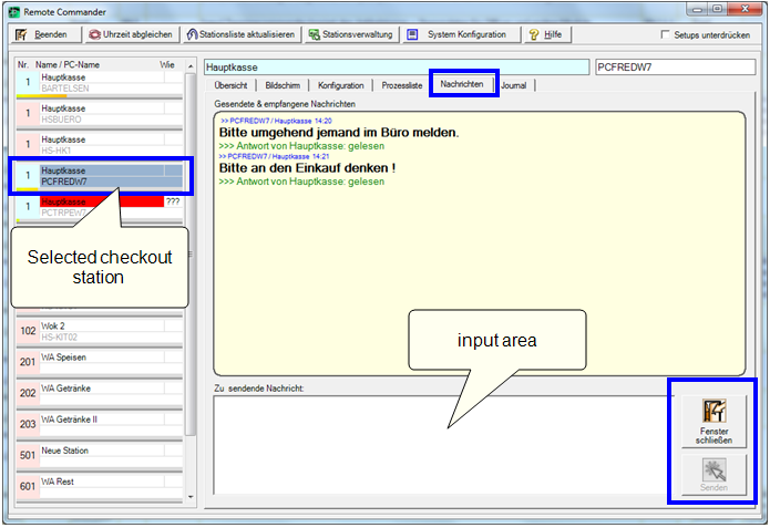 This allows you to send simple text messages to a pay station. The entered message is immediately displayed in a message window after pressing Send.