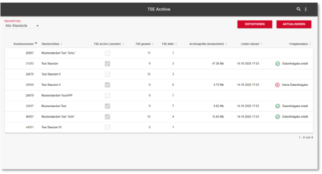 If you have a central/location system and you log into the TSE archive with a central account, you can view and export all data of the connected locations.