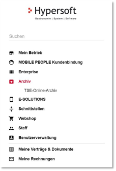 The TSE online archive can be reached at www.myhypersoft.de in the "Archives" section. Depending on the licensing and user authorisation, this menu item is displayed.