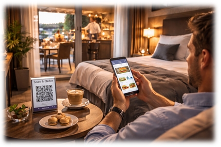 Provide your guests with the convenient option of ordering directly from their hotel room or other areas of your hotel - either via a simple web solution or via your own app with the look and feel of your brand for maximum customer loyalty.