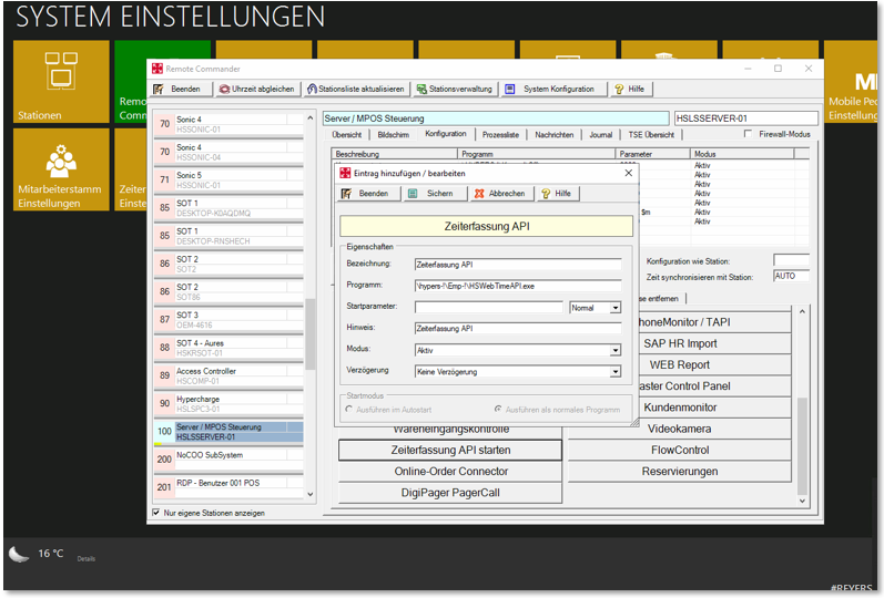 A gastromatic entry is available in the Remote Commander for the start configuration. The start entry for gastromatic with time recording can be made via the template button Start time recording API. This start entry is usually only required on the server / main device.