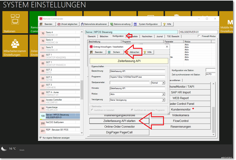 Once the gastromatic interface has been set up in the portal, go to the MCP and start the time recording interfaceunder Connections.