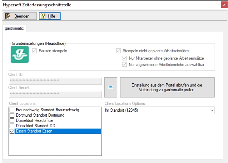The stamp data and also the master data are retrieved for all selected locations and new stamp times from the hypersoft system are transferred to gastromatic with this LocationID. Thus it is also possible to assign an employee to several locations in gastromatic (without double time recording data in Hypersoft).