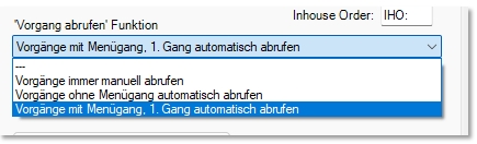 Transactions without menu-item postings can be called up directly and automatically via a setting. Alternatively, the 1st menu step can be used as a trigger for retrieval.