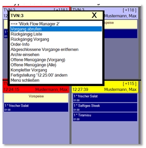 In the Row Station the menu Start Workflow Manager is entered and in the then started Workflow Manager Exit is displayed in the menu, with which you return to the Kitchen Row Station.