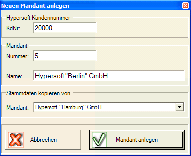 - Optional: Select a client to create a copy of the data from there, or start without the data of an existing client.