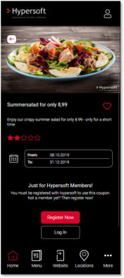 Specify the term of your coupon. Depending on the deposited value, these coupons are displayed in YourAPP. Please use the item availability in the item master, because only with this option a redemption before and after the running time is prevented. |